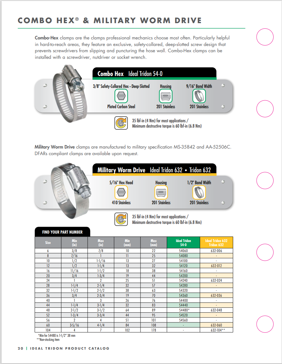 1/2 inch wide Ideal Tridon Military Worm Drive Hose Clamps are manufactured to military specification MS-35842 and AA-52506C. DFARs compliant clamps are available upon request. Designed for extreme reliability in aerospace, defense, and other critical fluid systems, theĀ 1/2 inch wide Ideal Tridon Military Worm Drive Hose Clamps are heavy-duty fasteners strictly manufactured to meet the rigorous military specifications MS-35842 and AA-52506C. These high-performance worm gear clamps utilize durable construction (typically stainless steel) to ensure superior, vibration-resistant sealing under high pressure and temperature conditions. For projects requiring specific sourcing mandates, DFARs compliant clamps are also readily available upon request, providing the highest level of adherence to quality standards for government and military contracts.