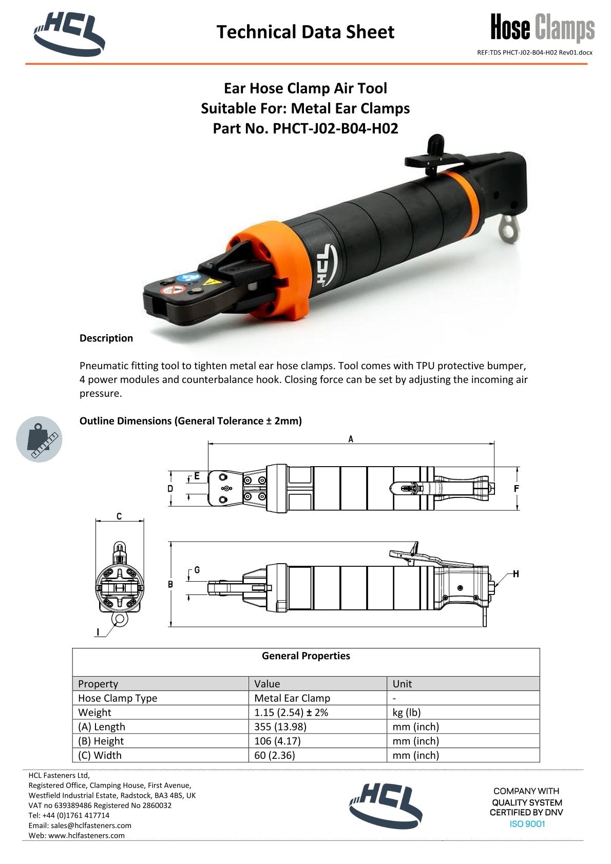 | For use with | Oetiker, Mikalor, Tridon & other Ear Clamps |